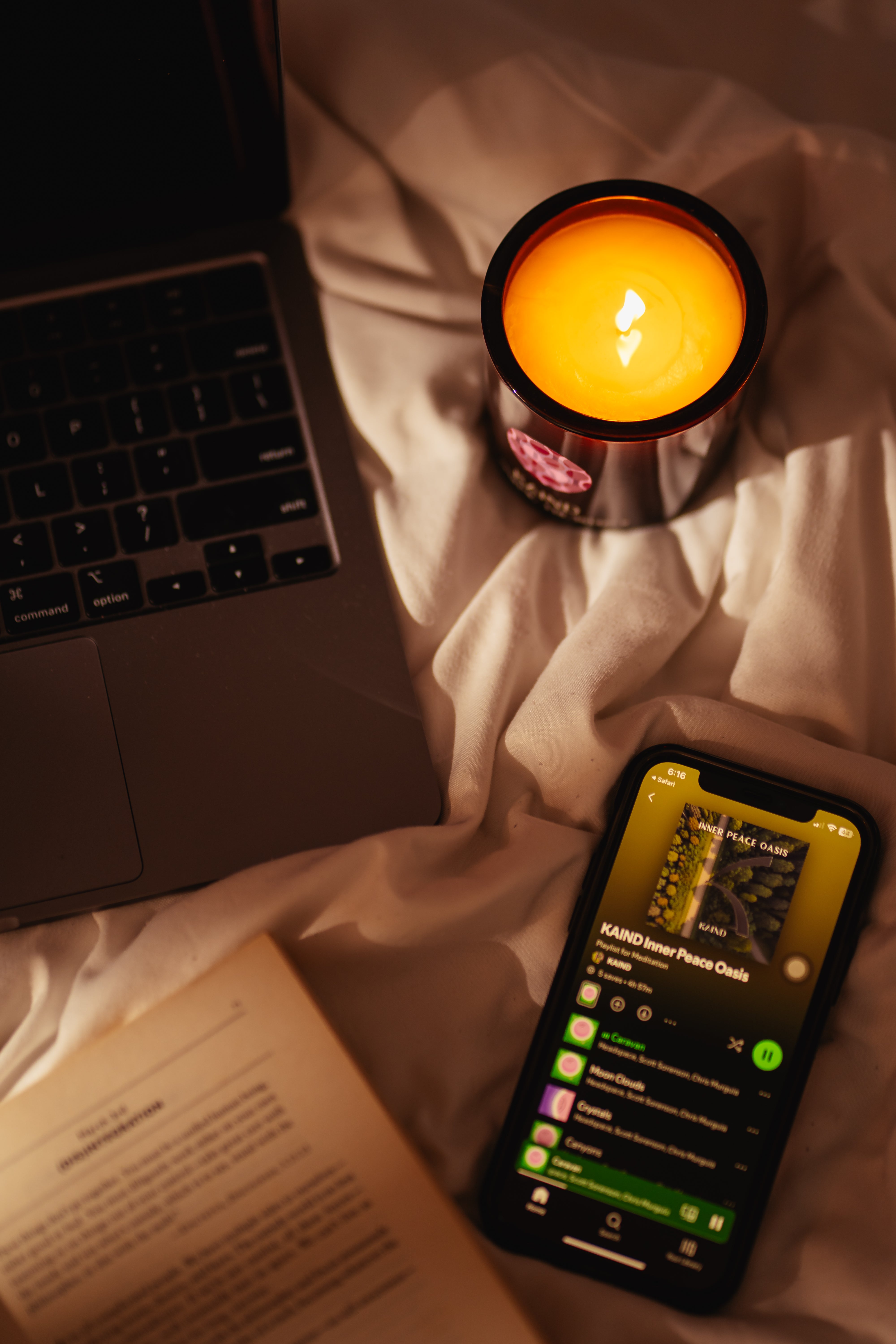 candles that blend soothing aromas and curated playlists.